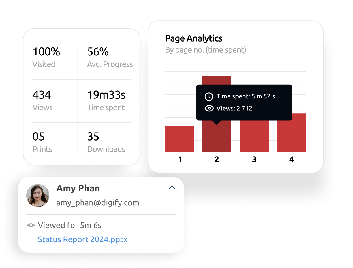 Gain complete visibility with comprehensive Page Analytics and document audit trail. Track and analyze your documents, including when they are opened, viewed, printed, or downloaded.