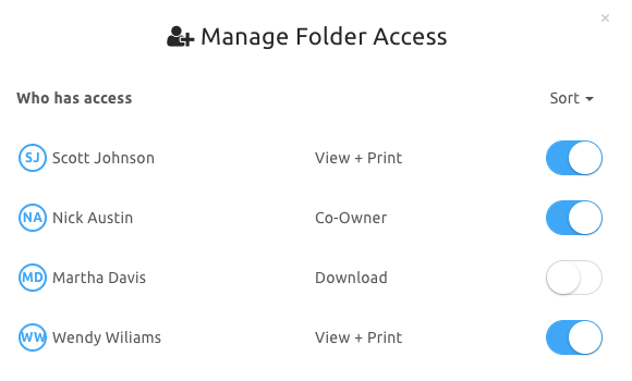 Give users specific permissions such as view, print, or download to ensure each person only accesses what they are allowed.